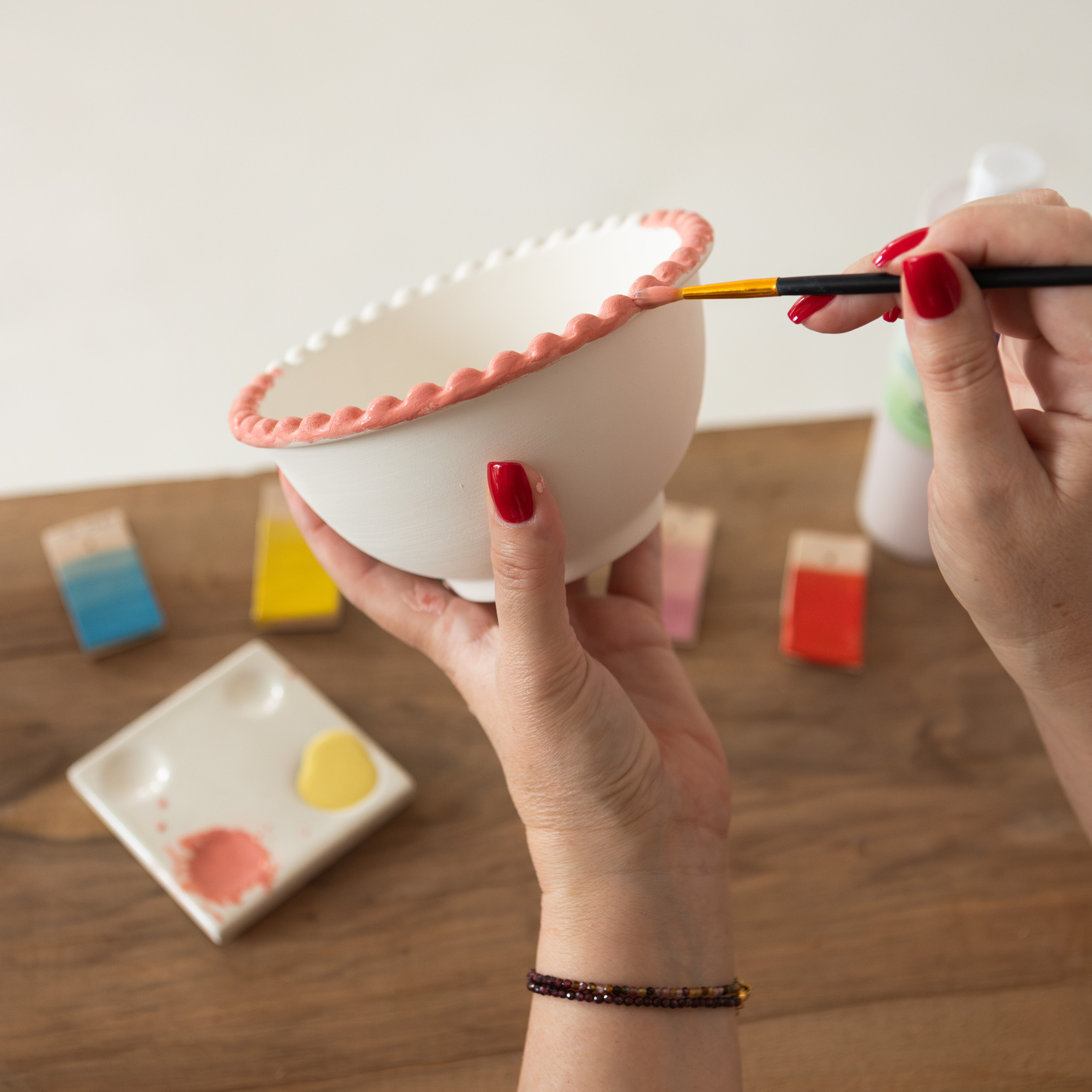 - Final glazing and firing of your ceramic in a kiln is handled by us - to make it food-safe. We'll notify you when your piece is ready for pick-up.